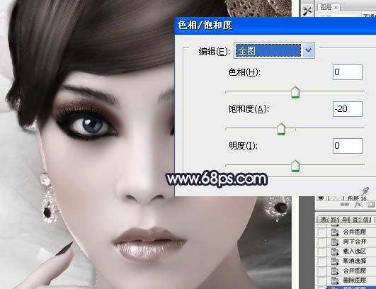 8、選擇畫筆工具 顏色如圖。給人物添加眼影。蓋印一個圖層,調(diào)整下色相飽和度。