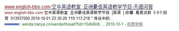 最近,測試了很多做外鏈的方式,其中一種就是針對于天涯問答的推廣方式,下面給大家分享一下天涯問答做外鏈的效果和辦法。因為天涯問答的收錄很快,權重很高,而且外鏈有效,所以是非常棒的選擇。昨天,我在天涯問答發(fā)表的一片帖子,今天查詢外鏈,就出現(xiàn)在了查詢頁首頁,截圖說明:
