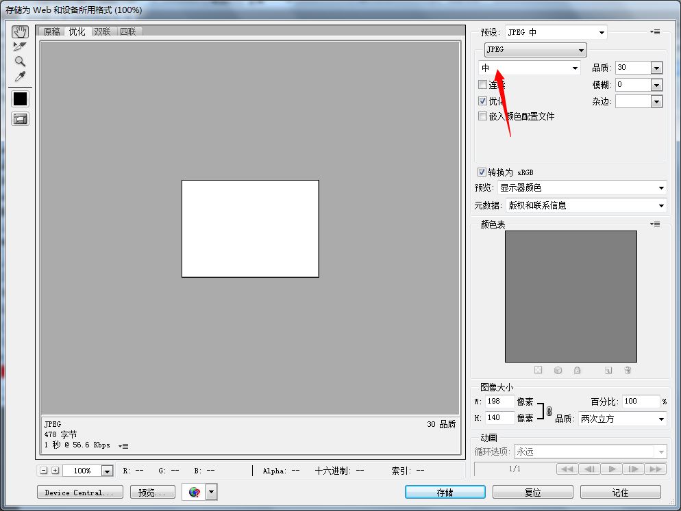 第二步:根據你的需求選擇格式和圖片的質量,如果圖片不需要描述非常細節,可以選擇中,如果有特殊需求,選擇高也沒有多大影響。然后點擊【存儲】即可。