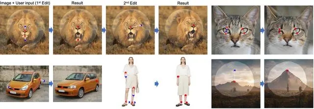1. 基于點的編輯:DragGAN允許用戶通過在屏幕上拖動和放置點來直接更改圖像。這可以實現比傳統圖片編輯軟件更準確和逼真的調整。